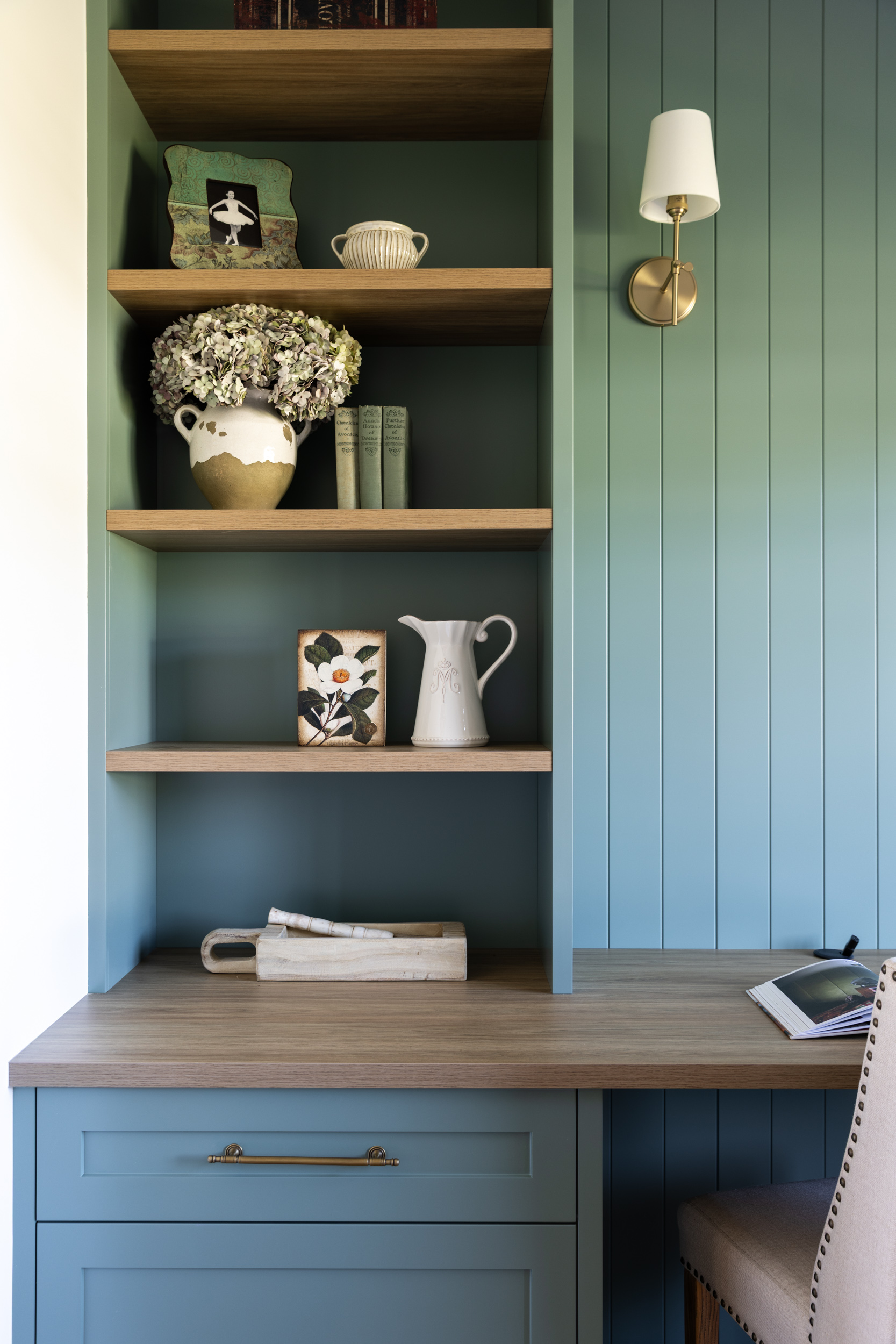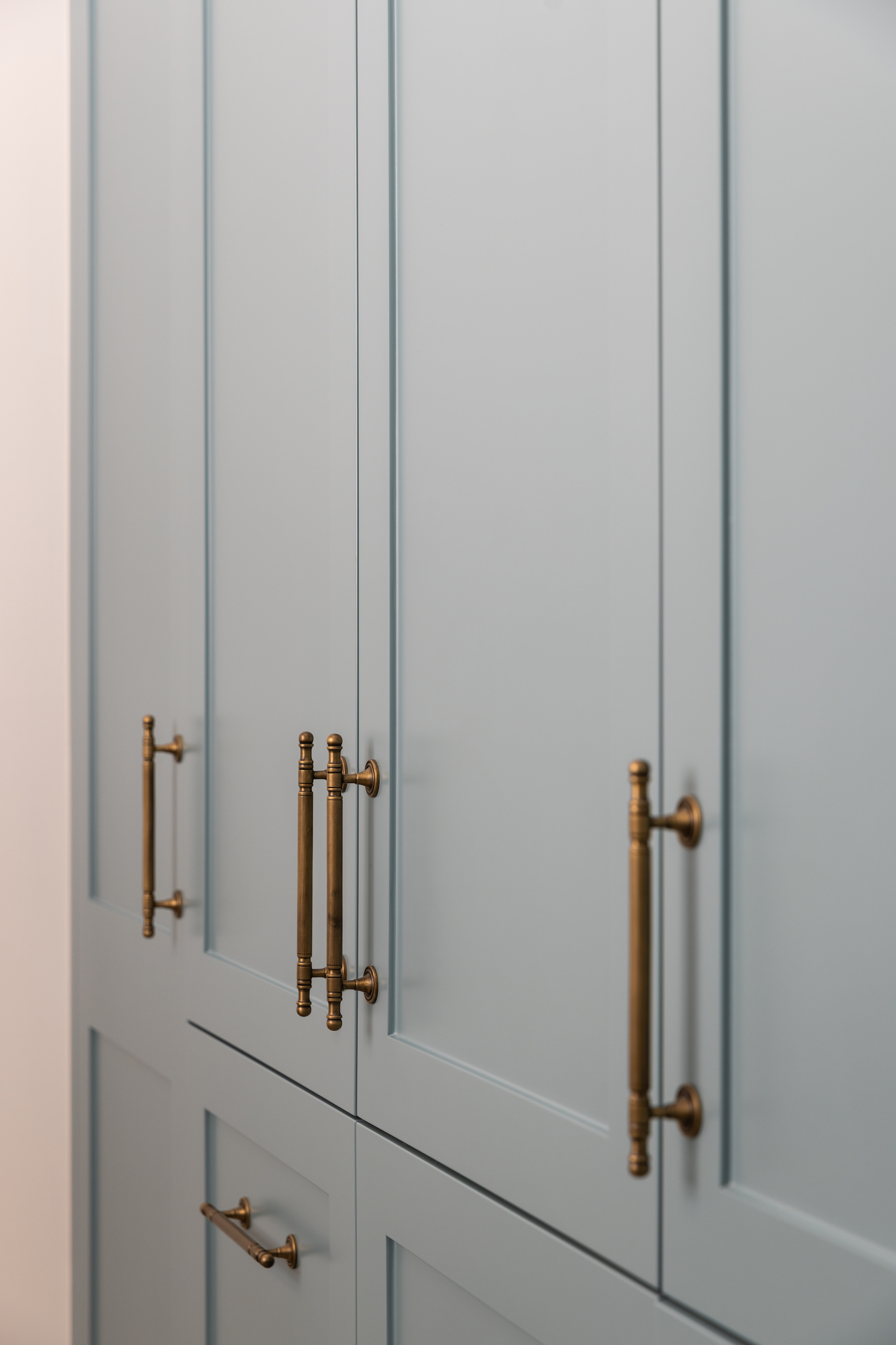 Cabinetry sitting one or two tones deeper than walls