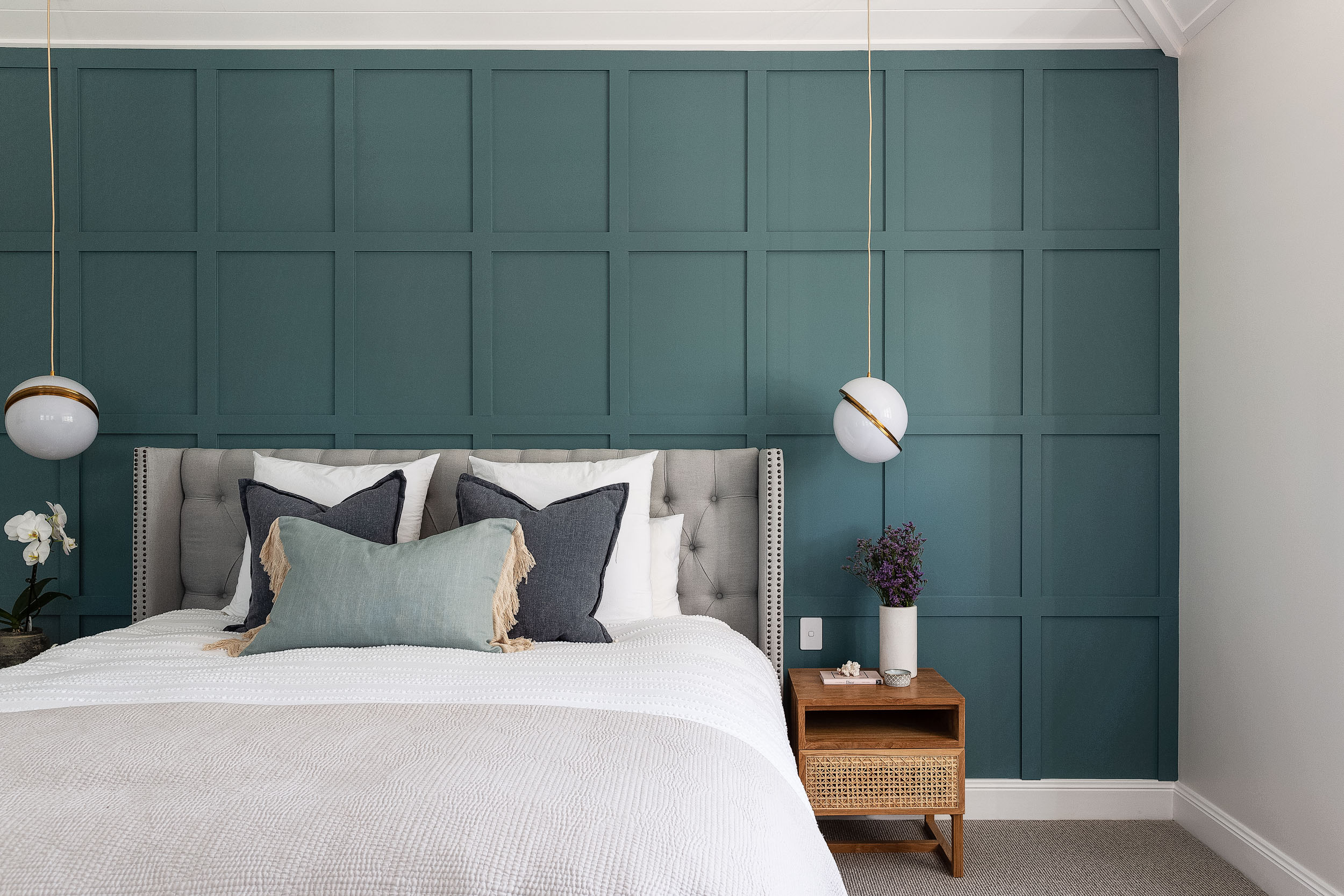 Soft greens and muted blue-greys evoke calm and stability. In longevity-focused homes, these hues help create a sense of retreat, reduced visual stimulation (or clutter), and emotional grounding. Importantly, we aim for these colourways to carry some warmth, avoiding icy undertones that can appear dull under ageing light perception.