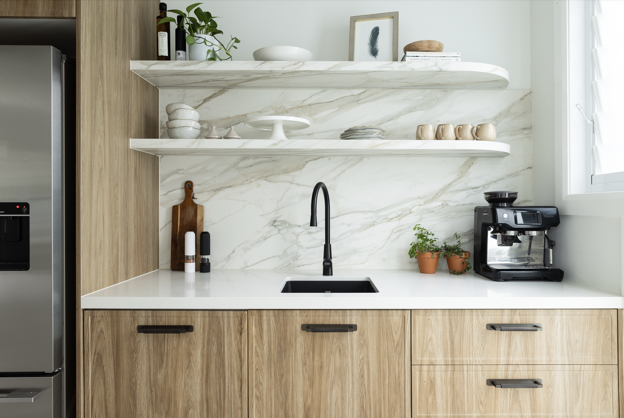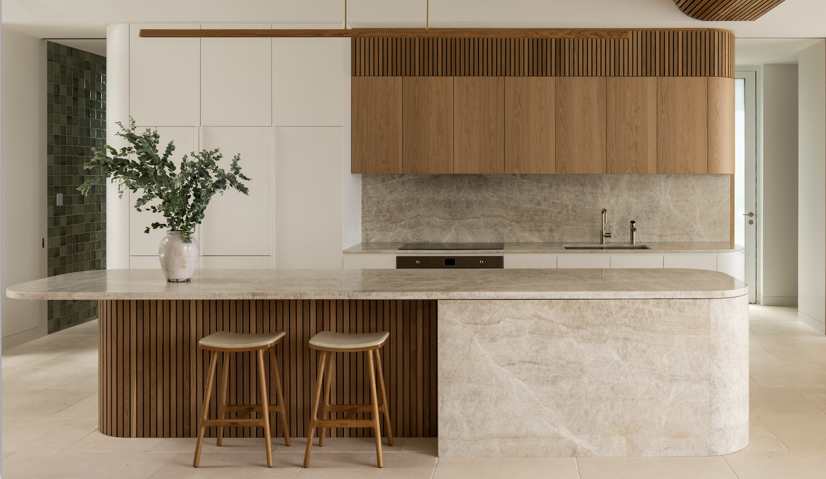 This palette feels calm, refined and architectural. The quartzite brings softness rather than drama, yet the depth of colour provides undeniable character, overall allowing the space to feel effortless and resolved.